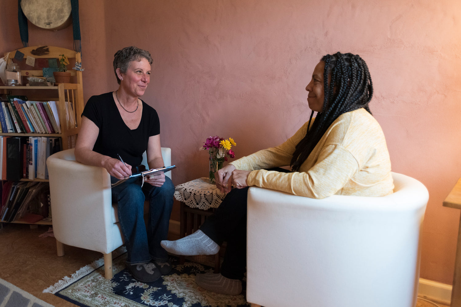 Our initial session begins with a conversation about what's going on for you physically, emotionally and energetically. In advance, you will have completed an intake form with highlights of your health and personal history that you are comfortable sharing.